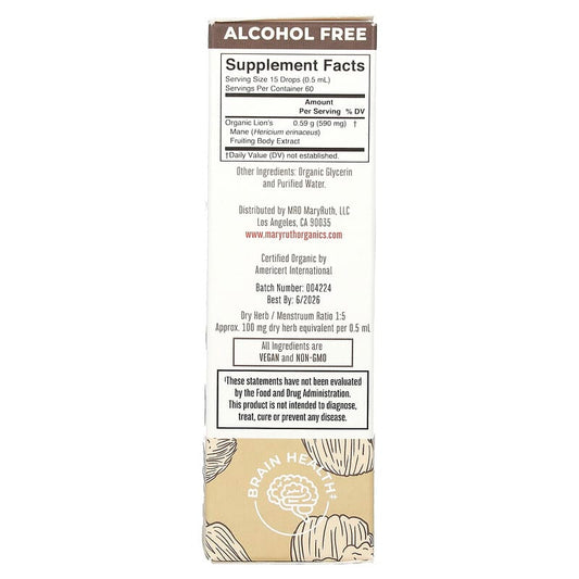 MaryRuth's, Organic Lion's Mane Mushroom Liquid Extract, Alcohol Free, 590 mg, 1 fl oz (30 ml)