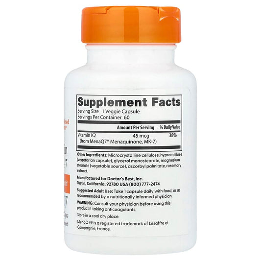 Doctor's Best, Natural Vitamin K2 MK-7 , 45 mcg, 60 Veggie Caps