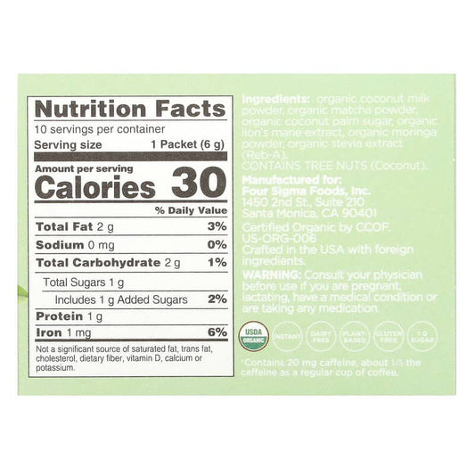 Four Sigmatic, Think, Organic Matcha Latte Mix with Lion's Mane Mushrooms, 10 Packets, 0.21 oz (6 g) Each