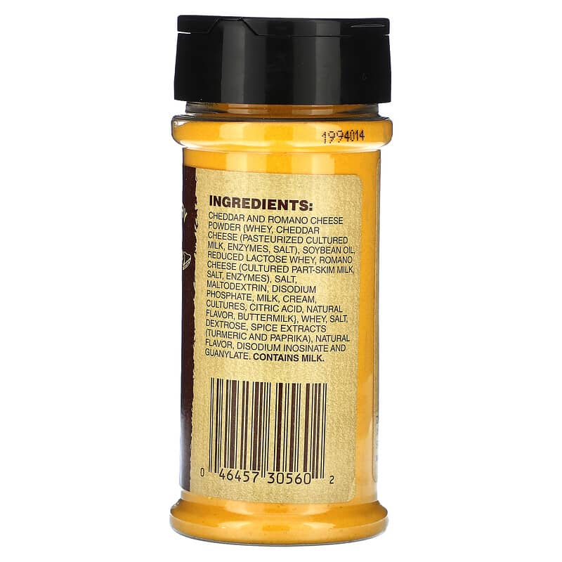 Cheddar and romano cheese powder (whey, cheddar cheese (pasteurized cultured milk, enzymes, salt), soybean oil, reduced lactose whey, romano cheese (cultured part-skim milk, salt, enzymes), salt, maltodextrin, disodium phosphate, milk, cream, cultures, citric acid, natural flavor, buttermilk}, whey, salt, dextrose, spice extracts (turmeric and paprika), natural flavor, disodium inosinate and guanylate.
