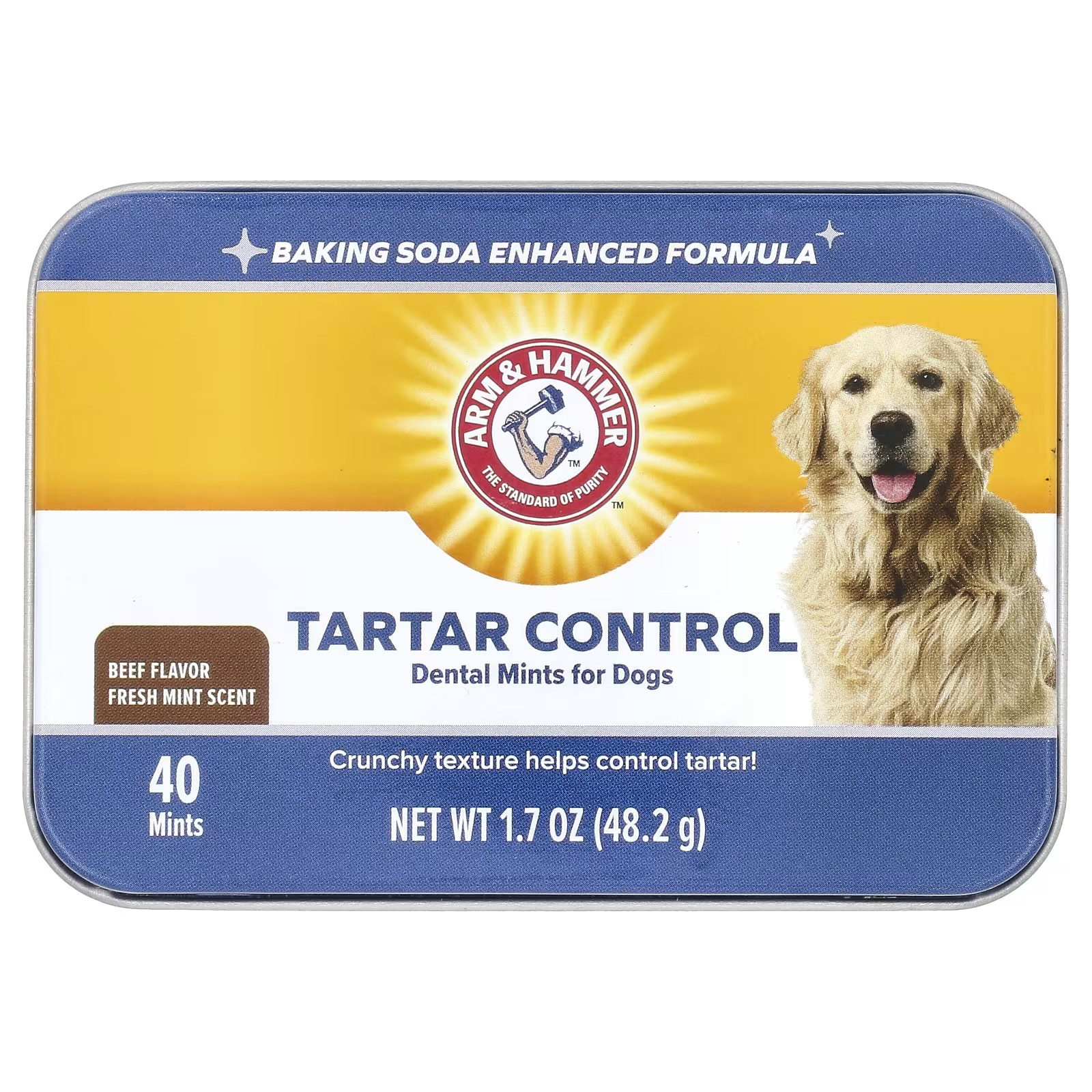Arm & Hammer, Tartar Control Dental Mints For Dogs, Fresh Mint Scent, Beef, 40 Mints, 1.7 oz (48.2 g)