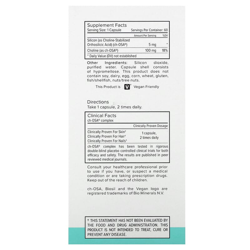 Silicon (as Choline-Stabilized Orthosilicic Acid) (ch-OSA®) | 5 mg | * |