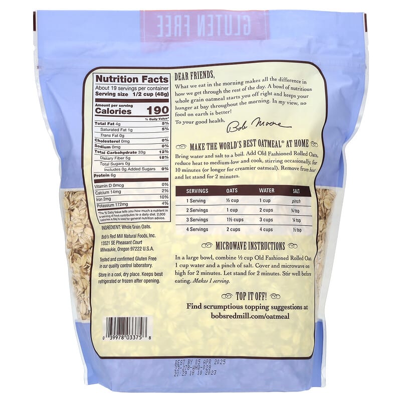 Bob's Red Mill, Old Fashioned Rolled Oats, Whole Grain, Gluten Free, 32 oz (907 g)