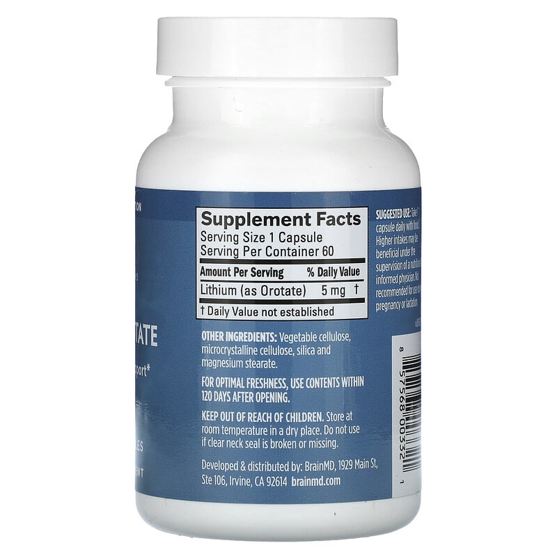 BrainMD, Lithium Orotate, 5 mg , 60 Vegan Capsules