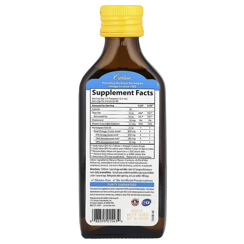 Carlson, Kid's, Norwegian, The Very Finest Fish Oil, Natural Lemon, 800 mg, 6.7 fl oz (200 ml)