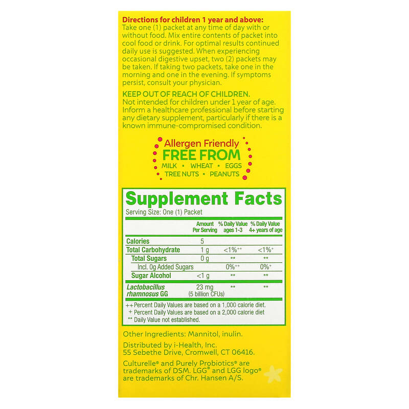 Culturelle, Kids, Purely Probiotics, 1+ Years, Unflavored, 23 mg , 30 Single Serve Packets