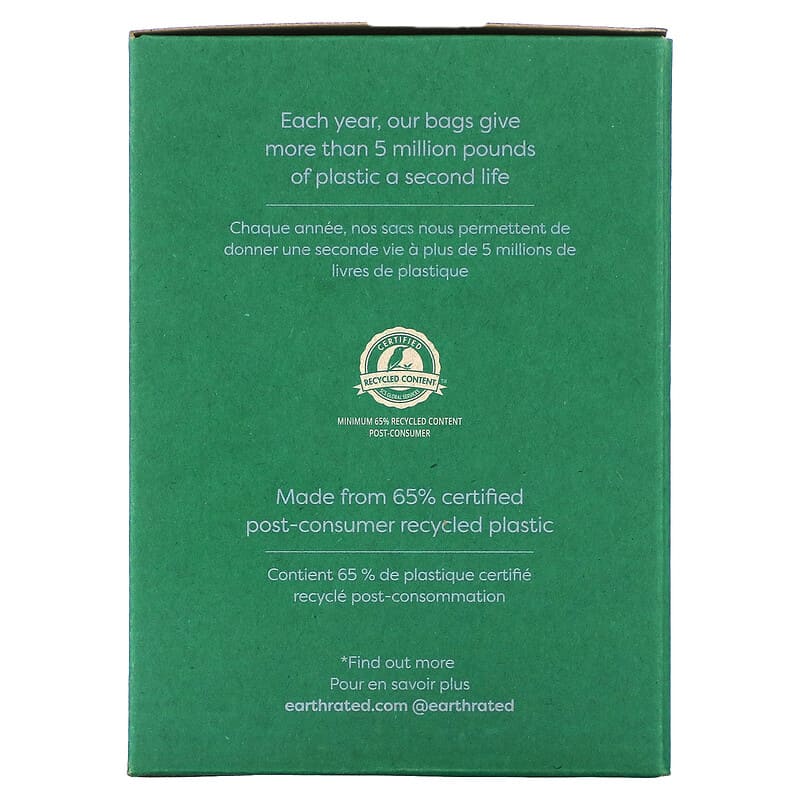 This box contains 18 rolls, with 15 bags each, for a total of 270 Earth Rated-official poop bags. They’re extra thick and leak-proof. (Because, you know. Poop.) They’re also extra long (measuring 9”x13”), and roomy enough to pick up after dogs of all sizes. Pop them into our dispenser for a perfect fit and flawless dispensing.
