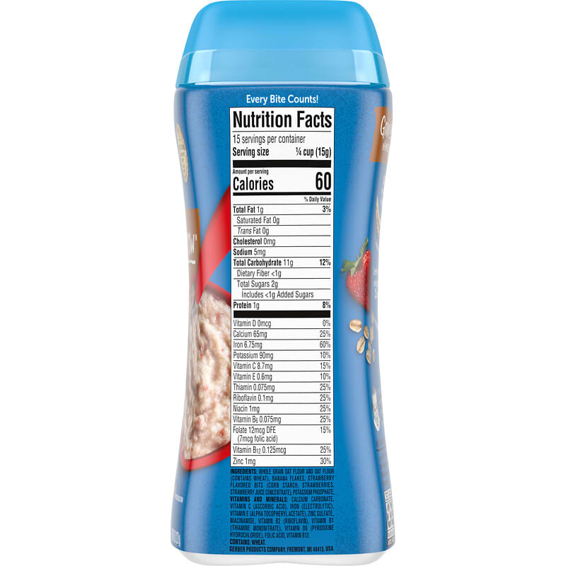 • Gerber® combines high quality whole grain goodness with 12 essential nutrients.