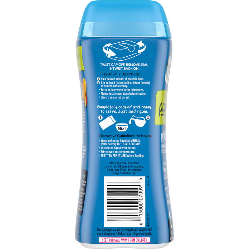 The first infant cereal made with a combination of whole grain gluten free oats, legumes and fruit to encourage baby's love of nutritious foods. Every serving has 11g whole grains, 2g plant protein, 1/3 serving of veggies/fruit¹ and probiotics B. Lactis² to support digestive health and a balanced microbiome.
