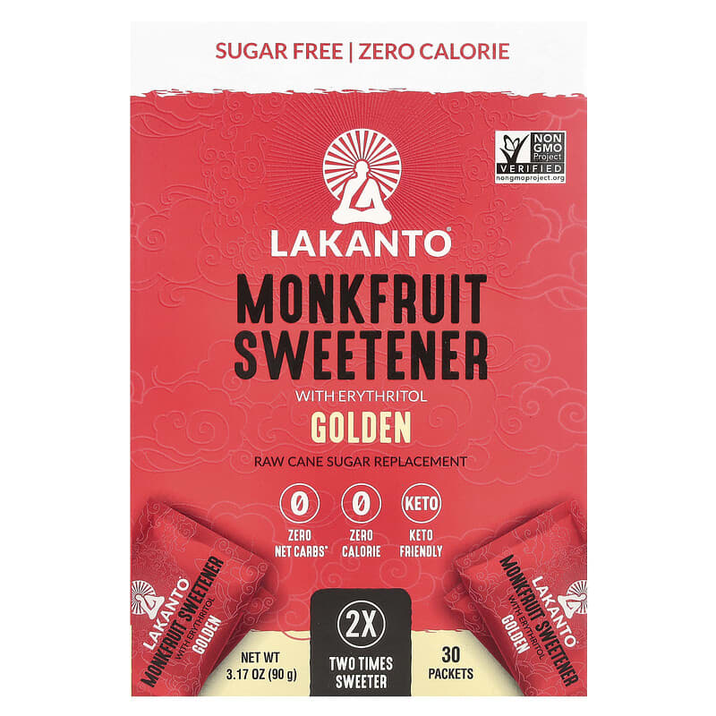 Lakanto, Monkfruit Sweetener with Erythritol, Golden, 30 Packets, 3.17 oz (90 g)