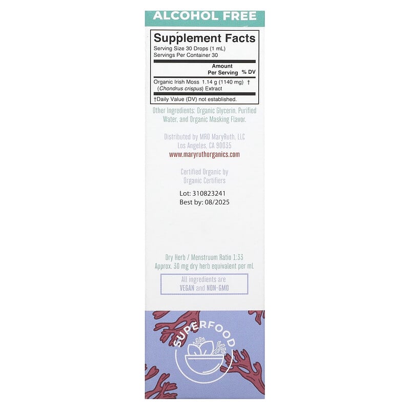 MaryRuth's, Organic Sea Moss Liquid Extract, Alcohol Free, 1,140 mg, 1 fl oz (30 ml)