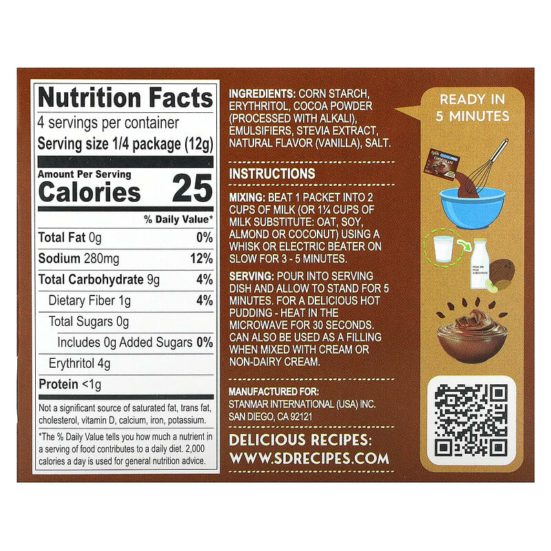 Natural Simply Delish, Plant-Based Instant Pudding, Chocolate, Sugar Free, 1.7 oz (48 g)