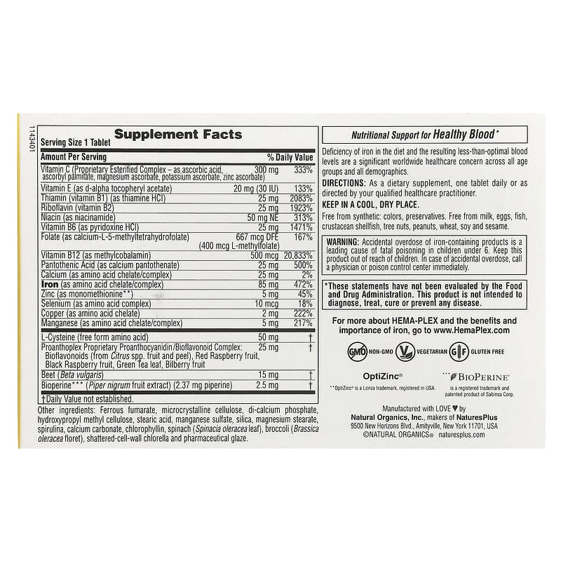 NaturesPlus, Hema-Plex, Iron, 30 Slow-Release Tablets