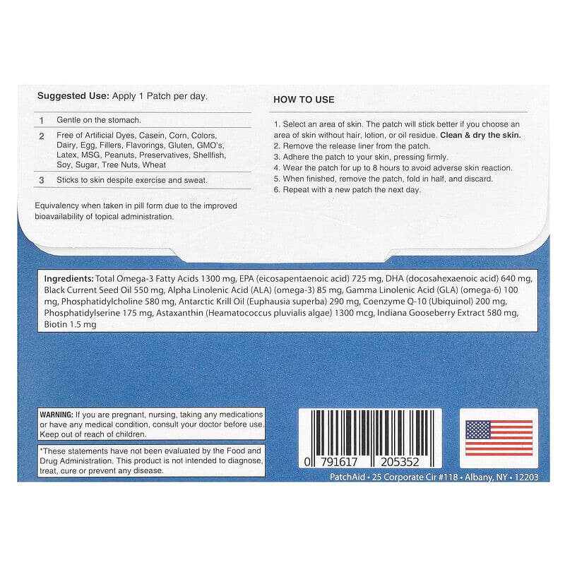 Total omega-3 fatty acids 1300 mg, epa (eicosapentaenoic acid) 725 mg, dha (docosahexaenoic acid) 640 mg, black current seed oil 550 mg, alpha linolenic acid (ala) (omega-3) 85 mg, gamma linolenic acid (gla) (omega-6) 100 mg, phosphatidylcholine 580 mg, antarctic krill oil (euphausia superba) 290 mg, coenzyme q-10 (ubiquinol) 200 mg, phosphatidylserine 175 mg, astaxanthin (heamatococcus pluvialis algae) 1300 mcg, indiana gooseberry extract 580 mg, biotin 1.5 mg.