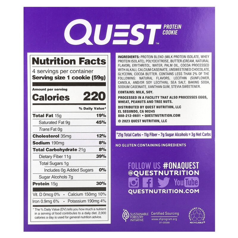 Quest Nutrition, Protein Cookie, Double Chocolate Chip, 4 Cookies, 2.08 oz (59 g) Each