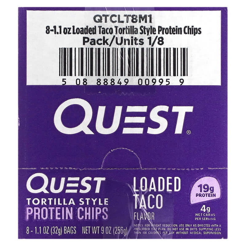 Quest Nutrition, Tortilla Style Protein Chips, Loaded Taco, 8 Bags, 1.1 oz (32 g) Each
