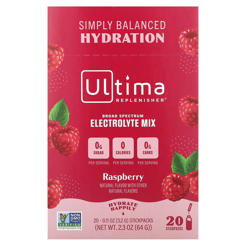 Ultima Replenisher, Electrolyte Mix, Raspberry, 20 Packets, 0.11 oz (3.2 g) Each