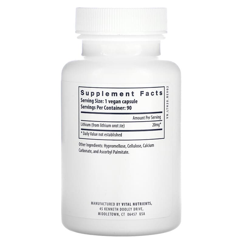 Vital Nutrients, Lithium , 20 mg , 90 Vegan Capsules